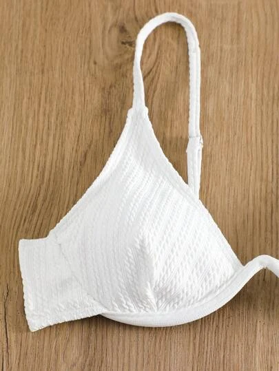 Textured Fake Pearls Decor Halter Triangle Bra & Thong Bottom 2 Piece Bathing Suit