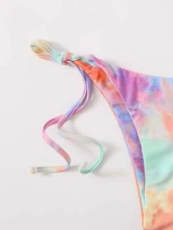 3pcs Tropical Print Push Up Bikini Swimsuit With Beach Skirt