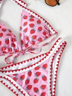 Bikinx Fruit Print Contrast Binding Triangle Bikini Swimsuit
