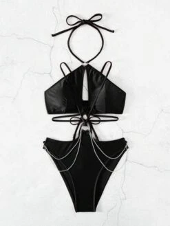 BOUDOIRCORE Ring Linked Cut Out One Shoulder Bikini Swimsuit