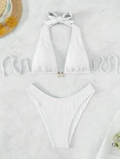 BOUDOIRCORE Cut Out One Shoulder Bikini Swimsuit With 1pair Leg Ring