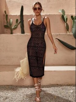 Striped Pattern Batwing Sleeve Cover Up Dress Without Bikini