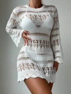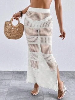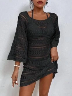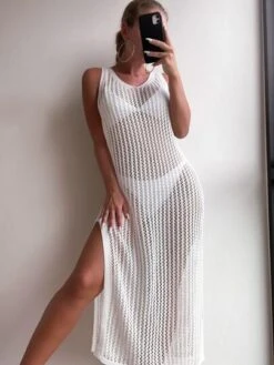 Hollow Out Slit Thigh Halter Neck Cover Up Dress Without Bikini