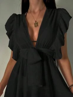 SHEIN Contrast Crochet Tassel Tie Backless Split Thigh Cover Up Dress Without Bikini
