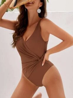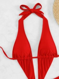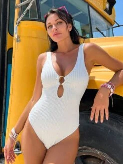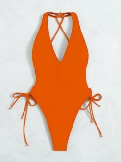Ring Linked Cut Out Criss Cross Backless Halter One Piece Swimsuit