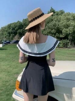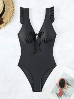 Sexy Black Long-Sleeve One Piece Swimsuit With Conservative European And American Style