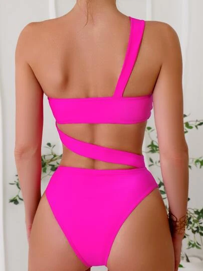 Women’s One Piece Swimsuit Sexy Asymmetric Pure Color Mono-bikini