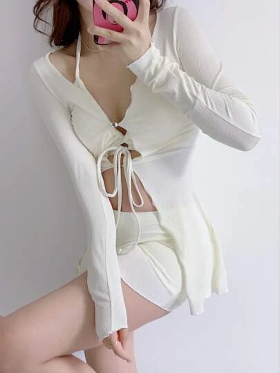 Be the first to review “Women’s Swimsuit 2023 New Split Anti-Uv Long-Sleeved Cover-Up, Sexy Pure Color, Halter Bikini, Beach Wear, White” Cancel reply